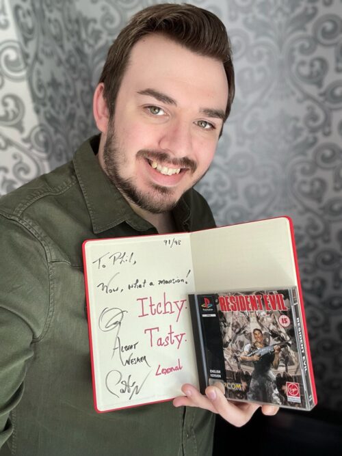 KEEP THE T-VIRUS AWAY SET!  Inspired by the guardhouse book, this second printing of the RE1 Collectible Red Journal will be signed and numbered by Lexonal and Pablo Kuntz, OG Albert Wesker. First released in April 2022 with artwork by Emma Evans.  Only 102 books printed, first come, first served!  A5 size, contains 48 lined pages.   Choose from your favourite OG Wesker lines or request your own text that you’d like Pablo and Lexonal to write!